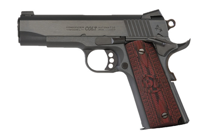Colt, MFG# O4942XE, UPC: 098289111357, UOM: EA, Combat Commander, 9mm, 4.25″ Barrel, Novak Sights, Blued, Black Cherry Grips, 9-rd, COLT, COLTHG10, COLTHGALL, HG10, HGALL