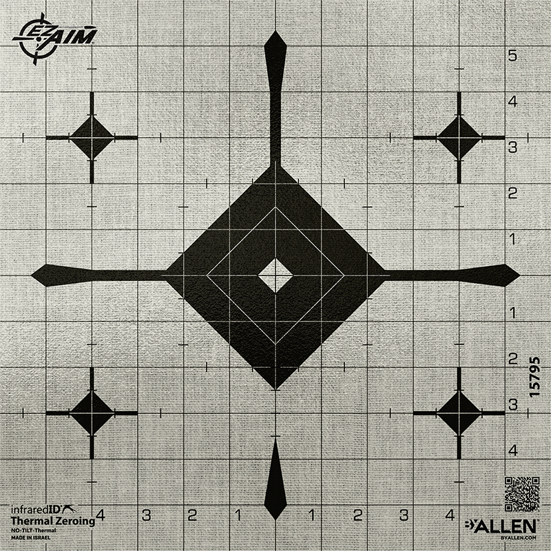 Allen Company, MFG# 15795, UPC: 026509076902, UOM: Each, EZ Aim Thermal ID Grid Bullseye Paper Target, Grey, ALLE, ALLEAC94, ALLEACALL, AC94, ACALL
