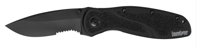 Kershaw Knives, MFG# 1670BLKST, UPC: 087171167107, UOM: EA, Blur Serrated Black Knife, Do-It-All Blade, SS, Alum Handle/SpeedSafe Opening, KERS, KERSAC35, KERSACALL, AC35, ACALL