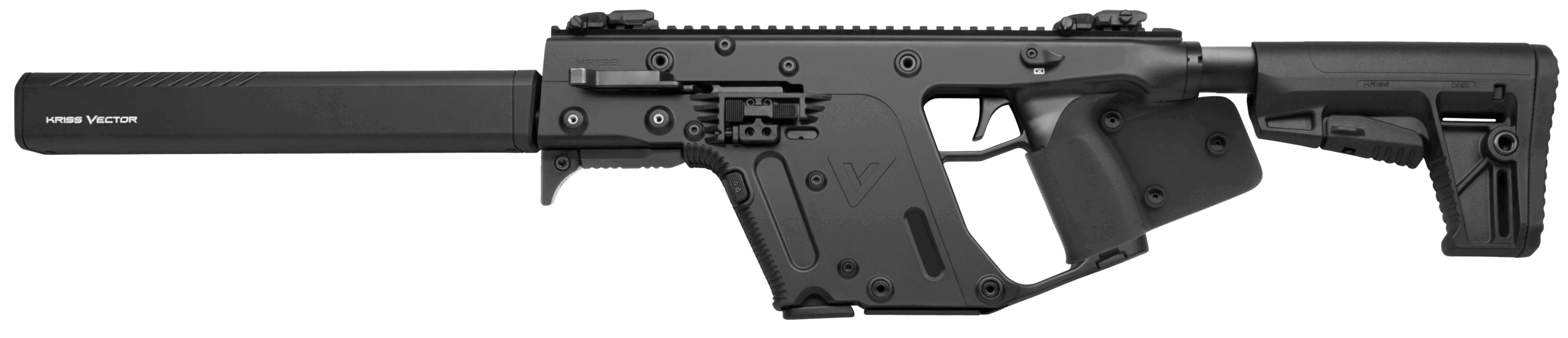 The KRISS Vector CRB is the non-NFA, semi-automatic, carbine variant with a 16″ barrel. Additional standard equipment on the KRISS Vector CRB are the flip sights, full-length picatinny top rail, lower picatinny accessory rail, and a Glock magazine. This 45mm model CRB has a maglock for CA compliance.