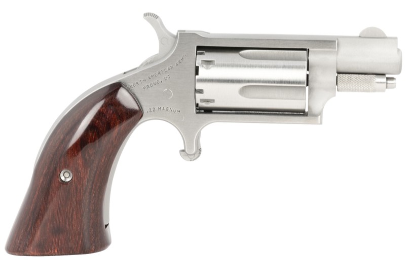 North American Arms, MFG# NAA22MSGBG, UPC: 744253001550, UOM: EA, Mini-Revolver, .22 Mag, 1.13″ Barrel, Stainless, Wood Boot Grip, 5-rd, NORT, NORTHG20, NORTHGALL, HG20, HGALL