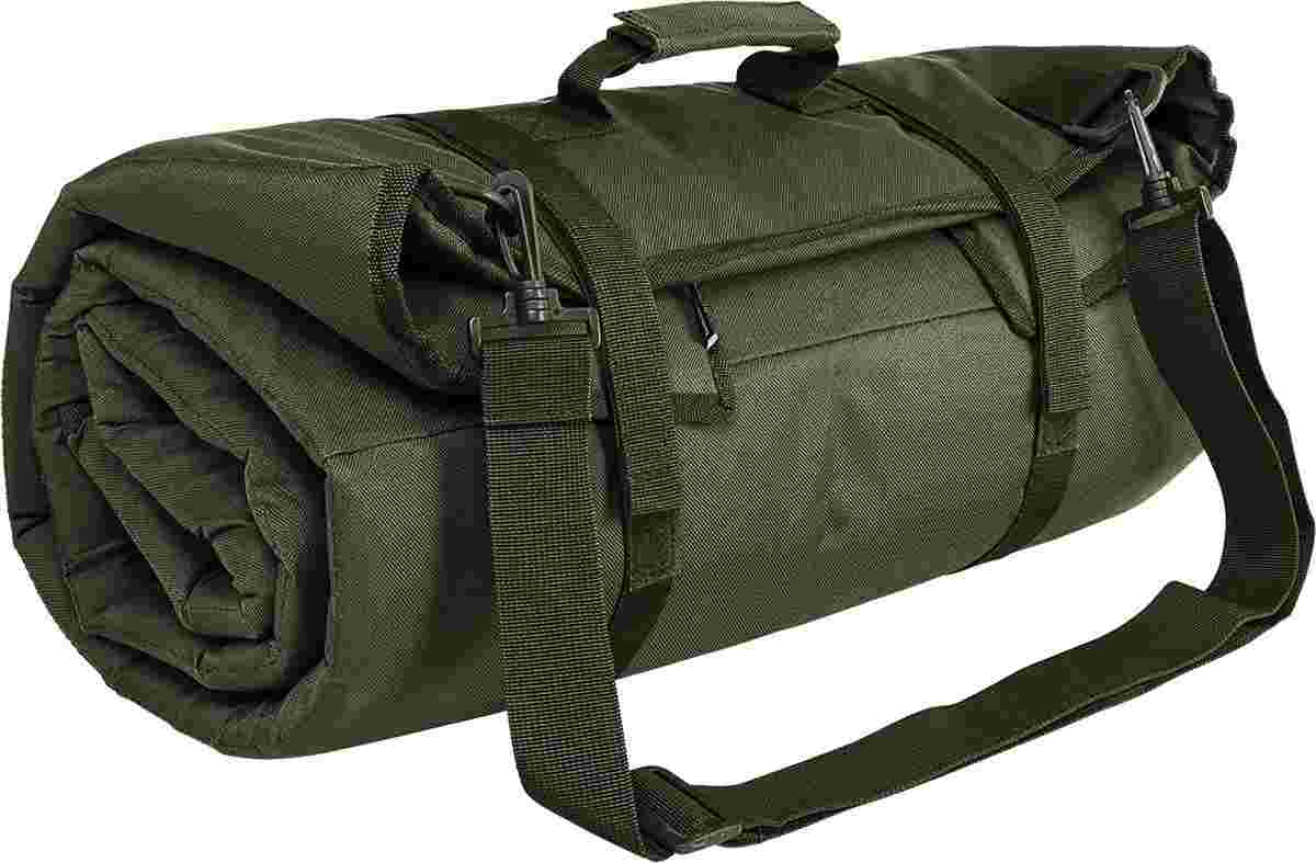 - Rolls up into a compact size: 19.5″W X 8.5″ H. Two hook and loop straps secure the shooting mat into a roll.