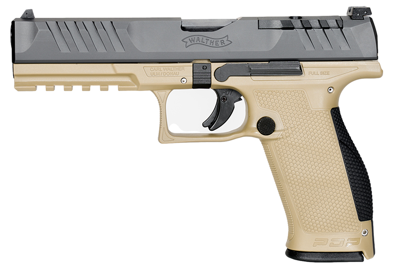 Walther Arms, MFG# 2858410, UPC: 723364227134, UOM: EA, PDP Full-Size, 9mm, 5″ Barrel, Optics Ready, 2-tone Tan,2 18-rd mags, WUSA, WUSAHG10, WUSAHGALL, HG10, HGALL