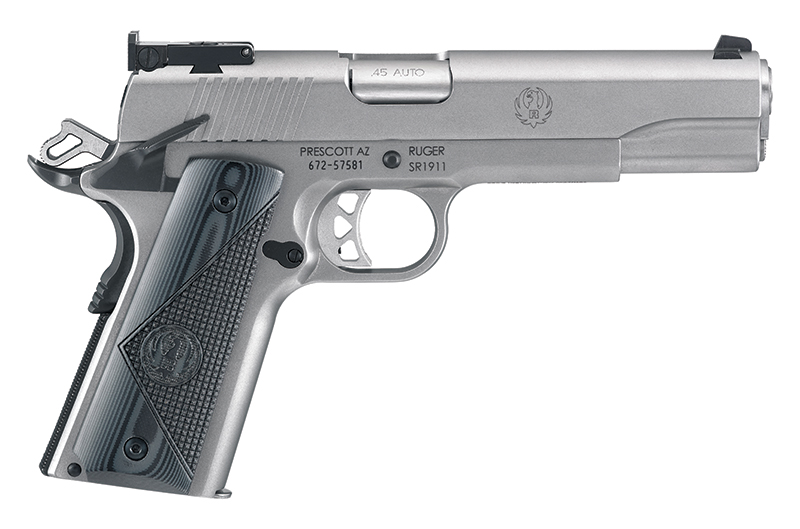 Ruger, MFG# 6736, UPC: 736676067367, UOM: EA, SR1911 Target, 45 Auto, 5″ Barrel, Bomar Sights, Stainless, 8-round, RUGE, RUGEHG10, RUGEHGALL, HG10, HGALL