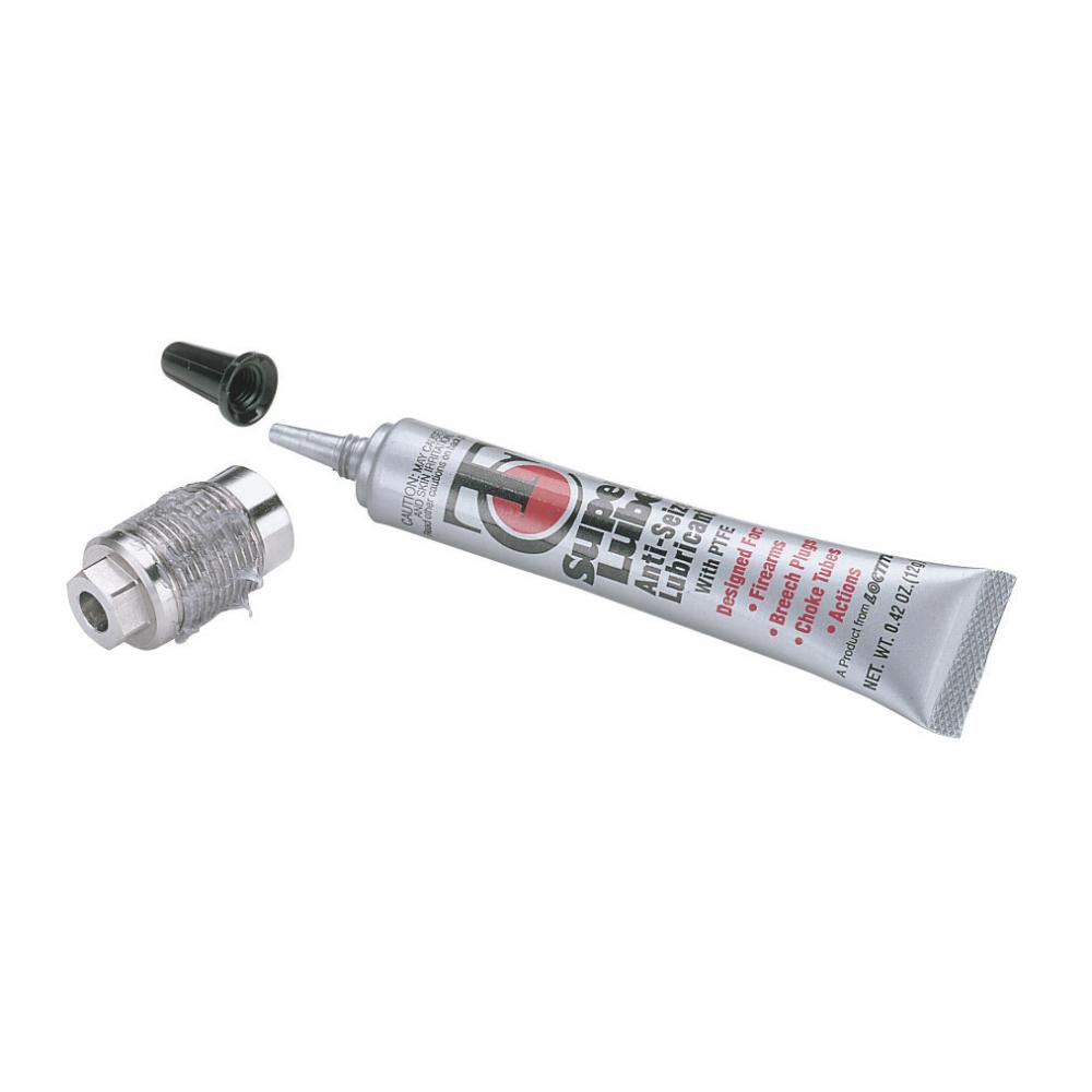 A hard-working synthetic-based lube which seals the threads of muzzleloader breech plugs as well as shotgun choke tubes. Withstands high operating temperatures and prevents fouling or powder residue from binding breech plugs. Also protects threads and other metal surfaces from corrosion.